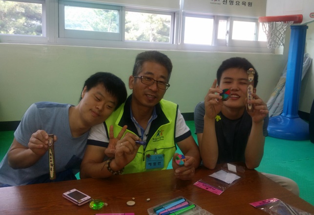 <선명요육원에서 장인들과 함께한 고창화 씨(가운데)>