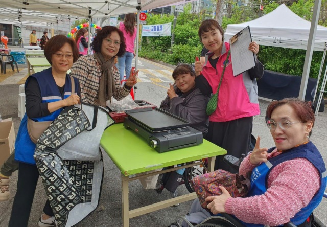 <복지관 바자회 행사에 참여한 박은아 씨(왼쪽 첫 번째)>