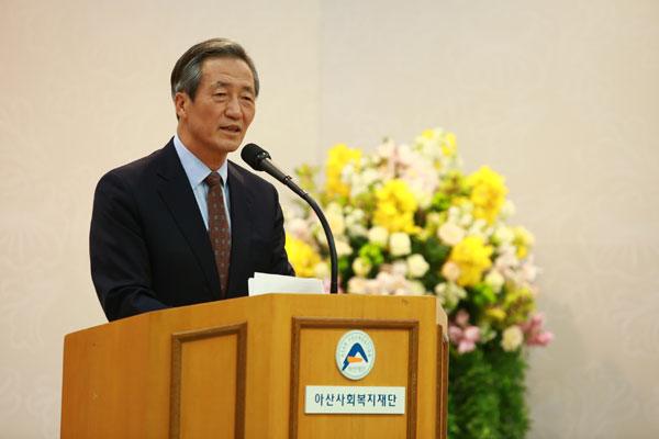 오늘 11월25일은 아산재단을 설립하신 저희 선친의 생신이기도 합니다. 아버님의 뜻을 기리기 위해 오늘 시상식을 마련했는데, 수상자 여러분들의 모습을 통해서 저는 아버님의 모습을 보는 것 같은 기분이 듭니다.