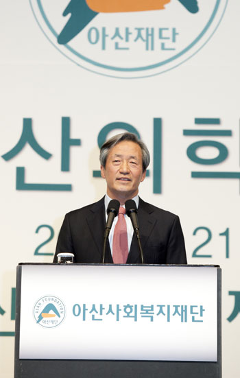아산의학상을 받으시는 정종경, 권준수 교수님과 젊은 의학자상을 받으시는 이정호, 김성한 교수님께 진심으로 축하의 말씀을 드립니다. 사모님들께도 축하 인사를 전합니다. 박건춘 아산의학상 운영 위원장님과 고재영 심사위원장님, 그리고 여러 위원님들도 수고 많으셨습니다. 오늘 축사를 해주실 오연천 서울대 총장님께도 감사드립니다. 어제는 선친의 12주기 였는데, 선친께서는 인류의 가장 큰 두 가지 고뇌가 질병과 빈곤이라 생각하시고, 그 질병과 빈곤의 악순환으로 고통 받는 이들을 돕기 위해 1977년 재단을 설립하셨습니다. 선친께서는 자신이 농촌에서 어려운 성장기를 보냈기 때문에 이 세상에는 불우한 이웃들이 많다는 사실을 누구보다 잘 알고 계셨는데, "농촌에 살다 보면 돈이 없어 병원에 못가고 병이 악화가 돼서야 가는데, 그때는 아무런 소용이 없다"는 말씀을 하신 기억이 납니다. 그래서 78년 7월 1일 정읍병원 개원을 시작으로 같은 해 11월 보성병원, 79년 보령병원과 영덕병원 등을 잇달아 개원하였습니다. 지방부터 시작한 병원운영을 보다 효율적으로 수행하기 위해서는 한단계 높은 의료를 제공하고, 연구능력이 있는 병원이 필요하다는 생각에 89년 서울아산병원을 개원하였습니다. 의료복지사업에 많은 관심과 애정을 쏟으셨던 선친의 뜻을 이어 환자 치료와 질병 치료 연구에 전념하고 계신 의과학자들을 위해 지난 2008년 아산의학상을 만들게 되었습니다. 아산의학상 1회 수상자이신 서울대 김효수 교수님을 비롯해 울산의대 고재영, 이승규, 박승정 교수님과 KAIST의 고규영 교수님이 수상하셨습니다. 재단은 아산의학상을 보다 내실 있고 독립적으로 운영하기 위해 기금을 만들었고, 그 기금을 300억 원으로 확대하게 되어 아주 기쁘게 생각합니다. 정종경, 권준수 교수님과 젊은 의학자상을 받으시는 이정호, 김성한 교수님께 다시 한 번 축하의 말씀을 드립니다. 어느 교수님께서 연구는 체력으로 한다고 말씀 하신 적이 있는데 많은 인내와 열정이 필요하다는 뜻으로 이해를 하고 있습니다. 인내와 열정을 가지고 도전하여 이루어 내는 눈부신 업적에 진심으로 존경의 말씀을 드립니다. 아산의학상이 좋은 상으로 발전할 수 있도록 도와주신 모든 분께 감사의 말씀을 드립니다. 참석하신 모든 분께 감사의 말씀을 드립니다. |