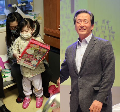 정몽준 이사장, 장기 7개 이식받은 건강하게 뛰어 놀라며 운동화 함께 선물